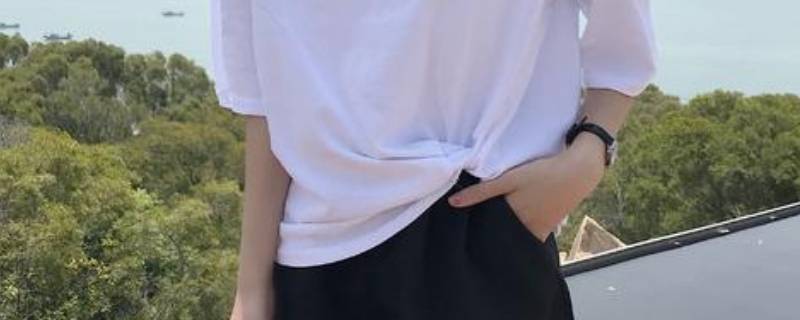 1、腰部打结:将T恤的一边向外翻,在腰部合适的位置用橡皮筋打个结,然后整理衣摆的褶皱。