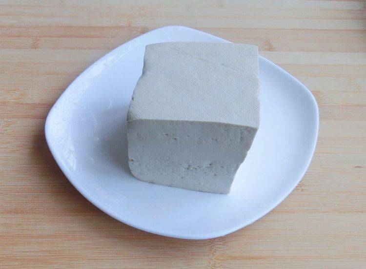 3、将豆腐切成2厘米见方的块。