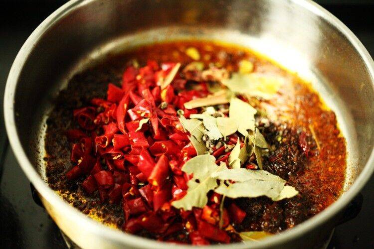 1、牛油融化后加入辣椒酱、蒜瓣、生姜同炒。