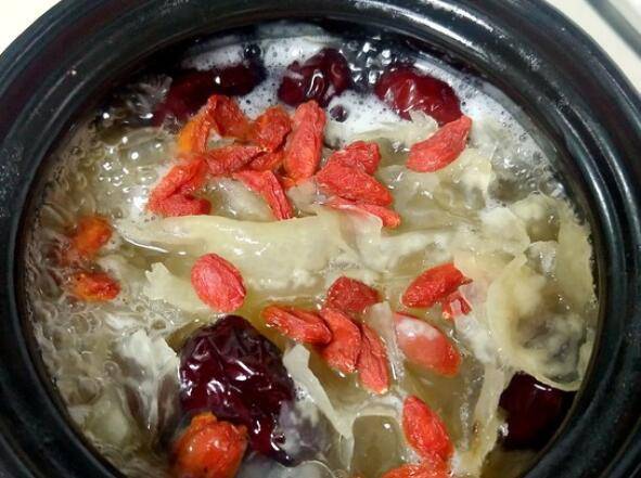 最佳答案梨汤的做法:1、准备材料:梨250克、银耳、枸杞、大枣、冰糖适量。2、梨去皮削成小块,银耳提前泡发,摘成小朵,枸杞和大枣洗净备用。3、把梨块和银耳放入砂锅中。4、放入红枣和冰糖,添入适量清水。5、大火煮开,转小火继续煮三个小时左右。6、最后停火后,放入枸杞即可。