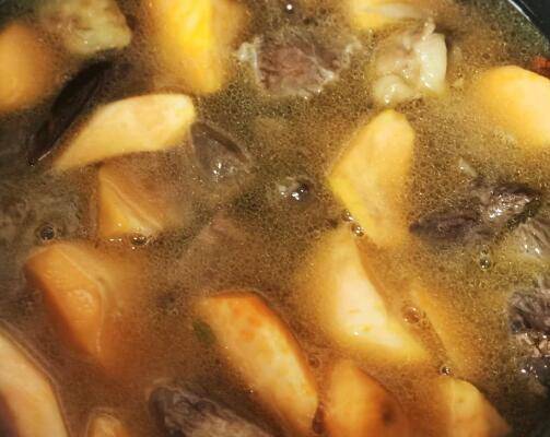 牛腩500克、红薯2个、草果1颗、八角4粒、生抽适量、盐适量、冰糖适量、洋葱10g。