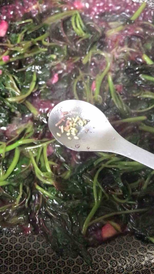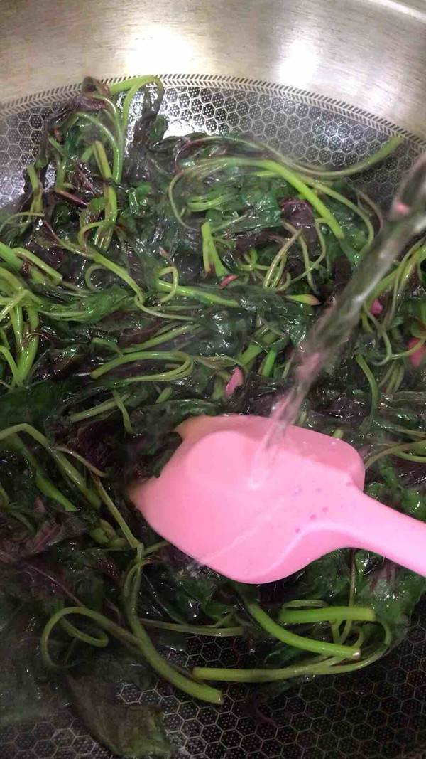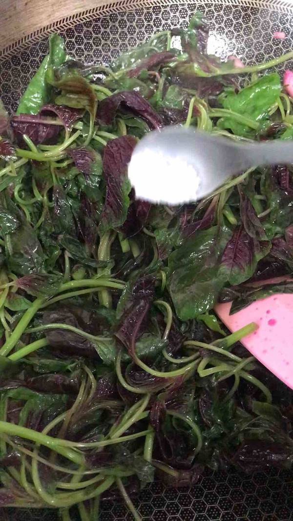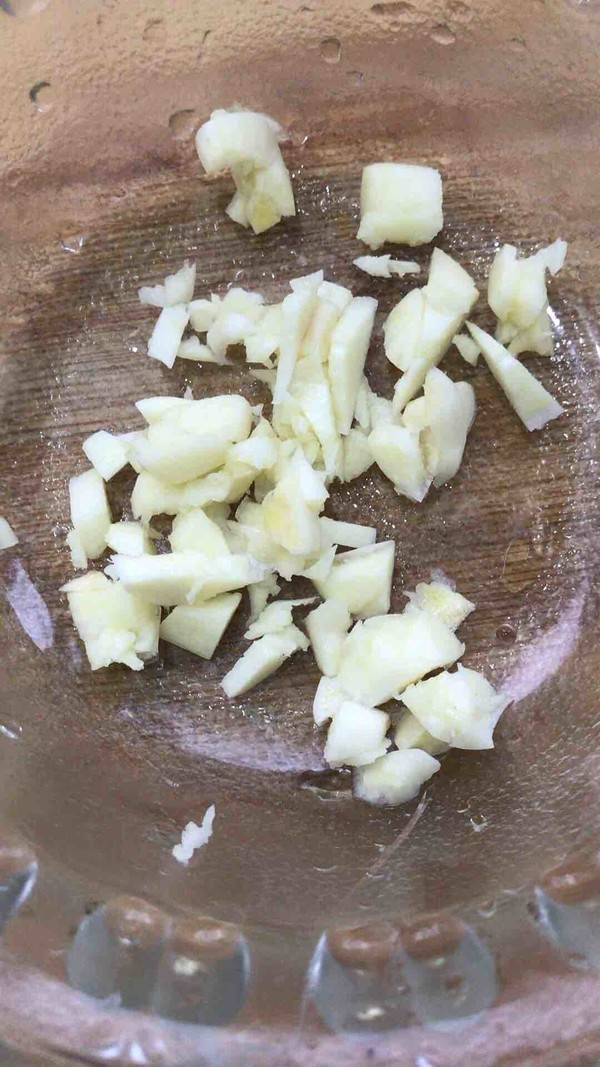 用料:汉菜350克、蒜2瓣、盐适量、糖适量、鸡精少许。