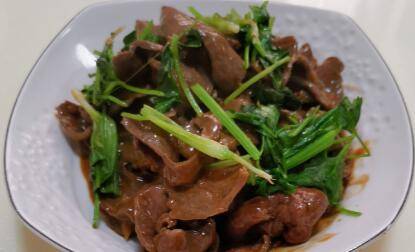主料:牛心一个、大蒜适量、香菜适量。辅料:辣椒酱1勺、酱油适量、盐适量。