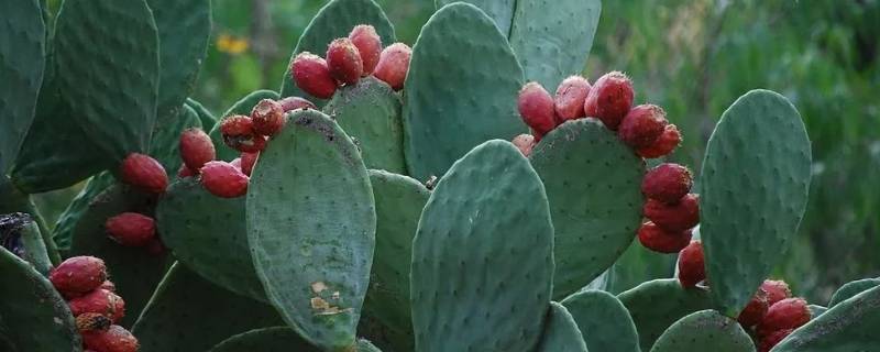果实:浆果倒卵球形,顶端凹陷,基部多少狭缩成柄状,表面平滑无毛,紫红色,小窠具短绵毛、倒刺刚毛和钻形刺,酸甜可食,鲜嫩多汁。
