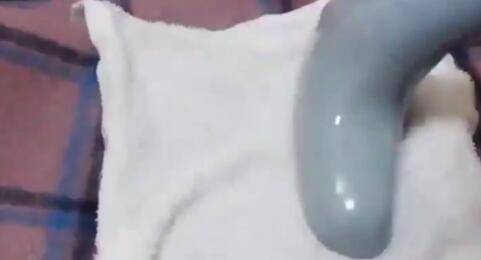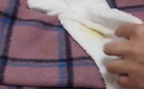 湿毛巾平铺在羊毛皮污渍处上,用挂烫机开始烫。
