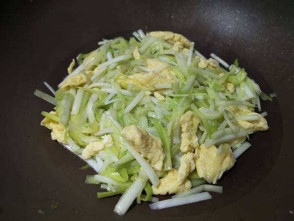 4、锅内热油,倒入鸡蛋炒熟盛出。