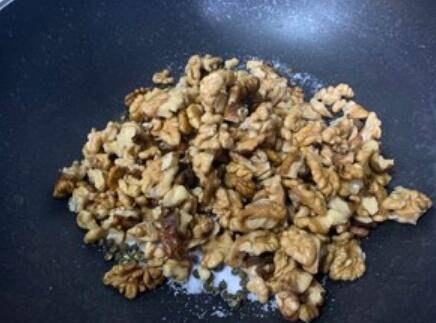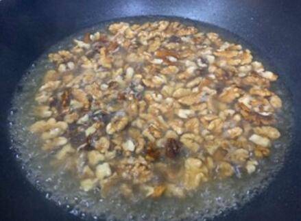 5.倒入沥干的核桃仁。