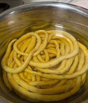 准备食材:面粉250克、鸡蛋1个、盐5克、水适量、猪油8克、芝麻5克。