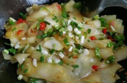 用料:金瓜半个、姜适量、蒜适量、辣椒适量、盐适量、生抽1勺、糖少许、醋(可无)适量。