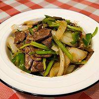 8、放入炒好备用的猪肝,调味,翻炒均匀即可。