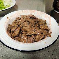 6、锅中放入油,加热至油温略高时放入抓拌好的猪肝,滑炒至猪肝变色,关火,猪肝沥干油盛出备用。
