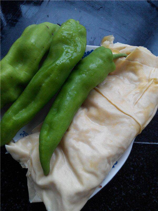 1、主料:尖椒、豆腐皮。
