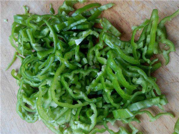 3、尖椒切成丝。