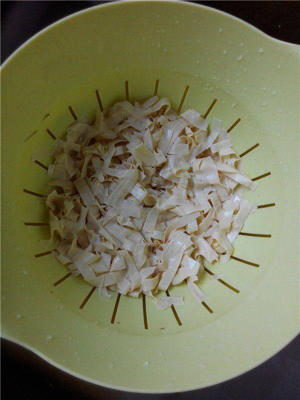 5、豆腐皮捞出用凉水过凉,沥干水。