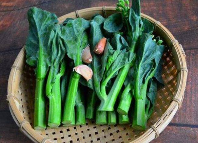 用料:新鲜芥兰、大蒜3瓣、食用油适量、鸡精适量、盐适量。