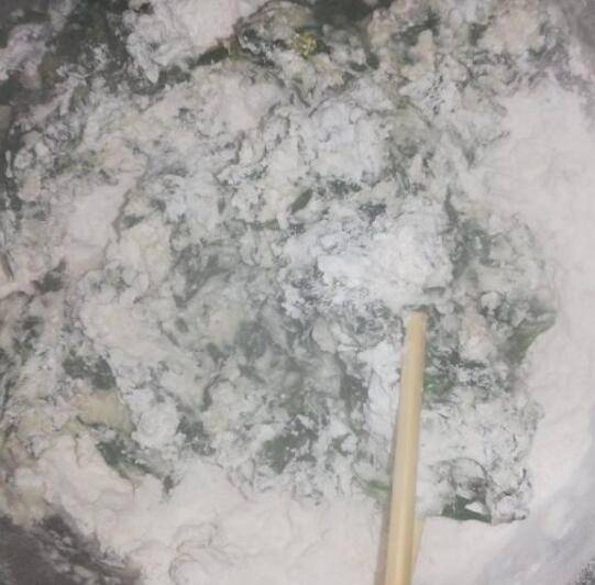 将煮好的火草盛入面粉拌匀。