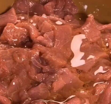 锅温油,下牛肉滑散,微微变色即可。倒出控油备用,因为锅里还要炒的。