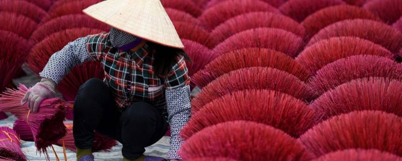6、晒制,将制成的半成品在阳光下晾晒。晒至两头翘起后置于阴凉处,洒少量水放平后再吹干。最后是每支线香切成等长4段即最终完成。
