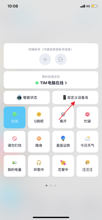 2、在左上角头像旁边点击在线。