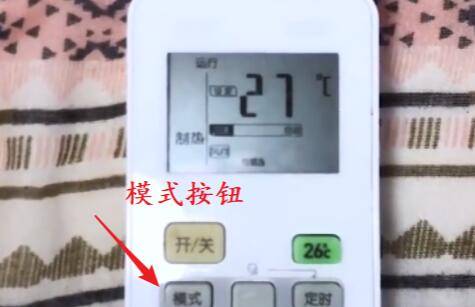 2、将遥控器对准空调,连续按下“模式”这一按键进行空调模式切换。