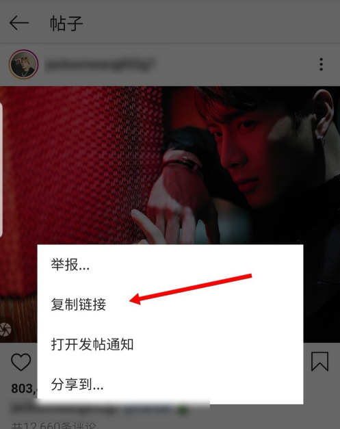 接着在图片右上方有一个三个点的图标,点击,选择“复制链接”。
