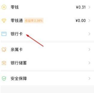 3、点击银行卡。