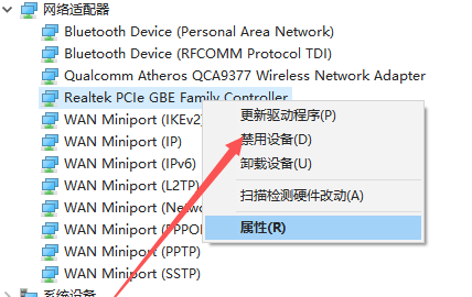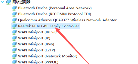 2、找到“Realtek PCle GBE Family Controller”。