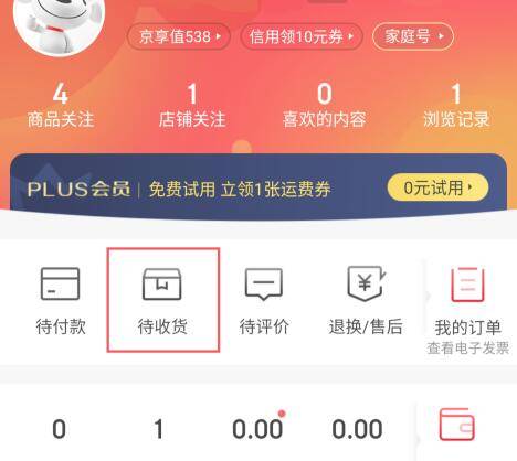 1、首先打开手机,进入“京东”界面,完成京东账户的登录。点击“我的”,进入我的界面后,找到“待收货”。