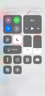 4、开启勿扰模式之后在手机屏幕上方的控制中心中,就会出现“月牙”的标志了。