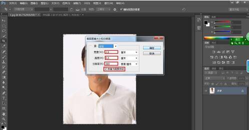 在弹出的“裁剪图像大小和分辨率”对话框中,分别输入宽度2.5cm,高度3.5cm,分辨率300px/cm,勾选“存储为裁剪预设”。