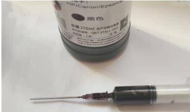 拿出注射器,抽取5ml左右的墨水;