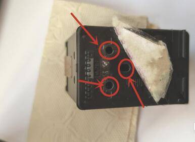 撕开墨盒顶端的标签,找到加墨孔;