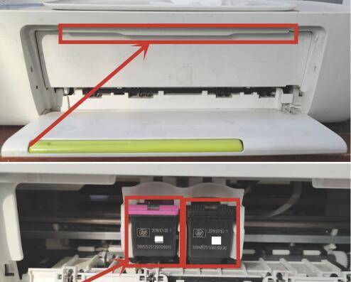 打开打印机机舱,轻轻取出墨盒;