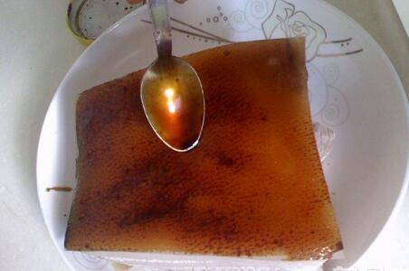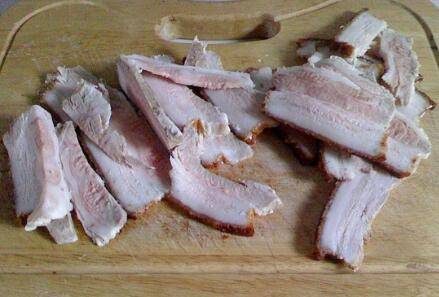 锅内放入油,油热后将肉皮的一面放入锅中,炸至肉皮变成棕红色和起了小泡,翻个面稍炸一下。