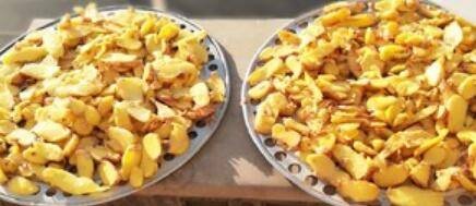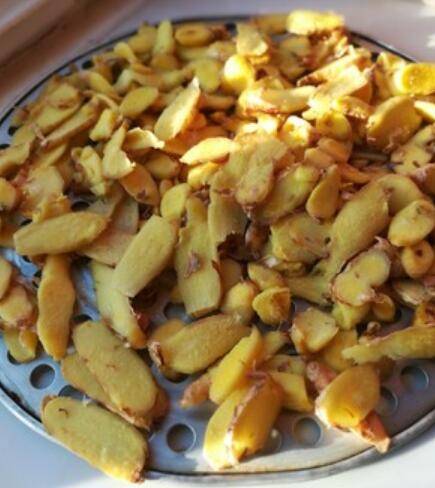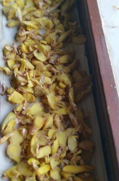 6.晒了一天的姜片,晚上拿进来,放在暖气上继续晾晒。