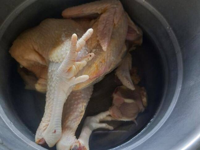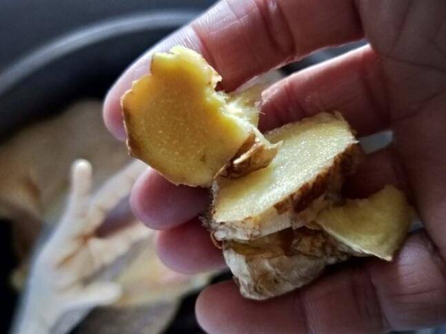 2、将鸡放入高压锅中,放入生姜。