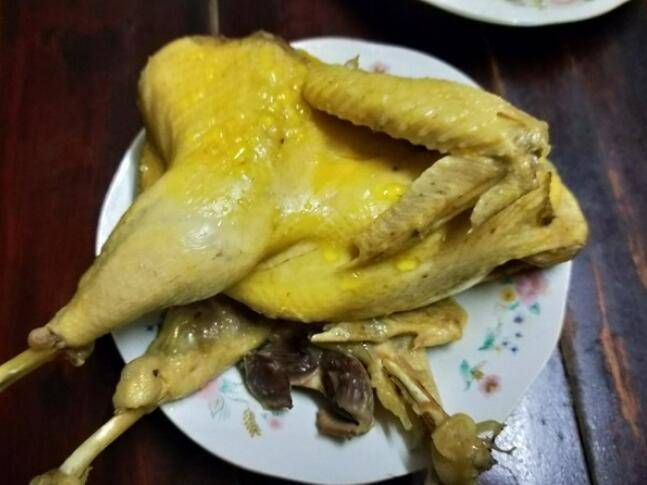 主料:白鸡。辅料:葱、料酒、生姜、盐、水。
