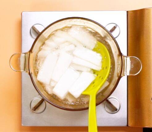 1、虾仁开背去虾线,冬瓜去皮切条。