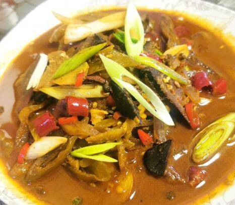 猪肝少许、料酒少许、豆瓣酱少许、泡椒少许、干辣椒少许、蒜苗一根、生姜、大蒜少许、花椒少许。