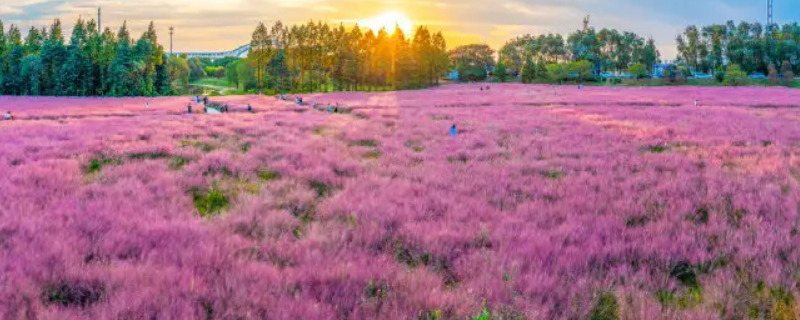 2022年嘉兴粉黛乱子草在嘉兴市嘉善县大云镇缪家村。粉黛乱子草是禾本目、禾本科、乱子草属植物。多年生暖季型草本,株高可达30-90厘米,宽可达60-90厘米。顶端呈拱形,绿色叶片纤细。顶生云雾状粉色花絮,花期9-11月,成片种植可呈现出粉色云雾海洋的壮观景色,景观可由9月份一直持续至11月中旬,观赏效果极佳。原产于北美大草原,中国上海、杭州等地均有种植。