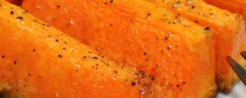 3、烤南瓜:将南瓜在馕坑里烤制2~3分钟后,用刀子切开,晾凉即可。