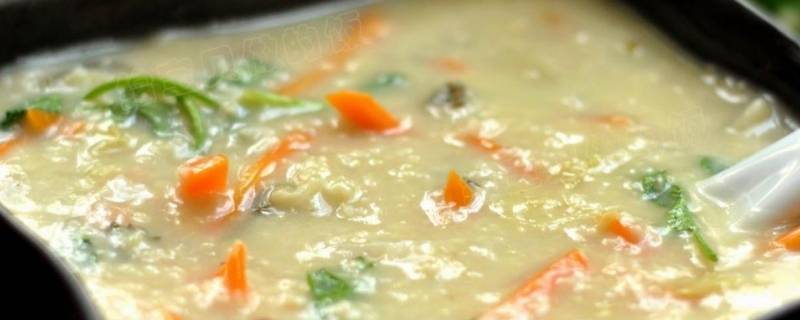 3、招远粉浆饭:用绿豆制作粉皮粉条后的余汁,加黄豆、花生米、白菜、猪油熬制,再加香油、香菜,食之有一股独特的酸、香、甜、绵的味道。