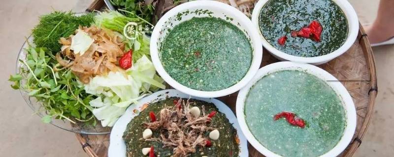 3、傣家撒苤:撒苤有两种:一种是苦撒,另一种是柠檬撒。最好吃的做法是将用棒子敲得一丝筋也不留的精瘦生牛肉捏拌上特殊的野香菜和韭菜,这捏拌,一定要将两者弄得几乎合为一体才算合格;而且这牛肉,必须敲击到口中也感觉不出肉粒来那种程度;这是整道菜的精髓所在。