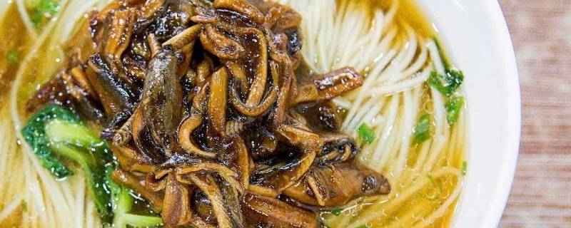 1、丝丝鳝鱼面:丝丝鳝鱼面为坐横面,其配料比例为5公斤优质面粉加猪化油0.1公斤,鸡蛋3个,精揉成团,切成银丝面备用。煮好的面条加上蒜浆和鳝鱼即可上桌。丝丝鳝鱼不仅可作面饴,还可作宴席的多种主菜和配菜,其色、香、味、形均佳。
