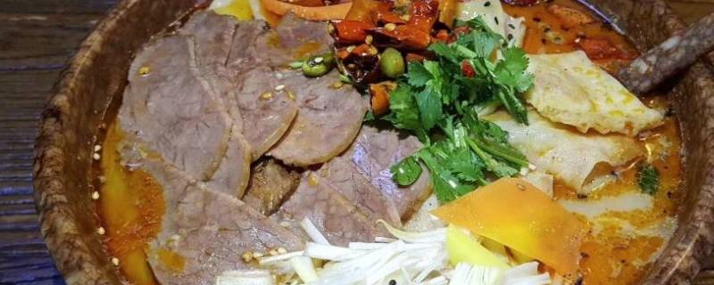 3、牛肉饸饹面:荞麦面的饸饹,浇上满是牛油的牛肉汤,汤浓面香。圆粗条的饸饹面,在浑浊的牛肉汤里一过,滋味全都浸到里边,唯有大口吸溜才吃的够味。