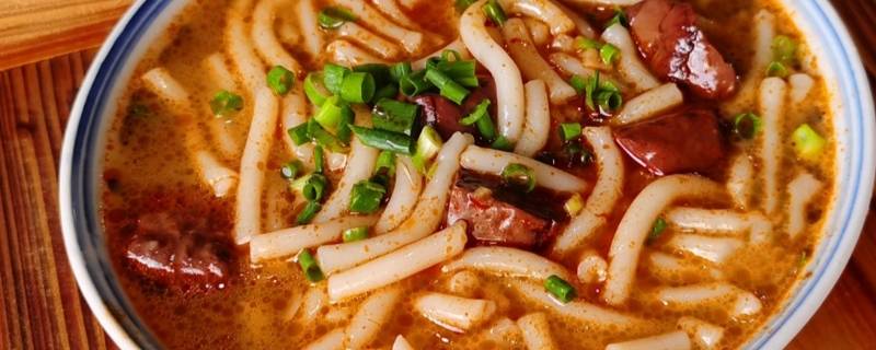 6、酸汤粉:酸汤粉是粉干经过长时间的泡发之后,和猪血熬煮成酸辣口味的一种美食。
