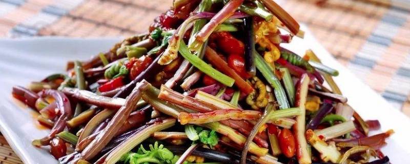 2、凉拌蕨菜:取腌制好的上好关山蕨菜,把葱花、蒜蓉、香油、盐、醋搅拌均匀即可。美味可口、香气宜人。
