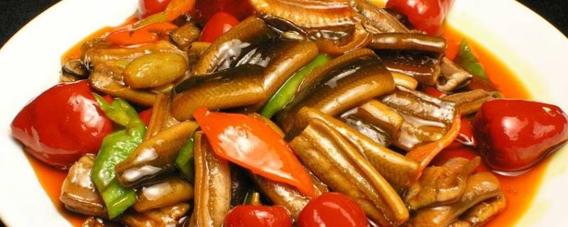 把买回来的黄鳝彻底清洗干净。把清洗干净的黄鳝切成寸段便但不要切断,放入开水锅中加料酒汆烫一下,去掉黏液后捞出。