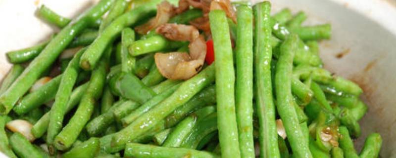 4、锅中放油烧热,将大蒜和豆角一起放入炒。