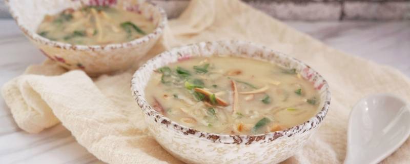 5、水沸后煮上1-2分钟,用勺取一两勺沸腾的汤汁入糊中搅拌均匀。